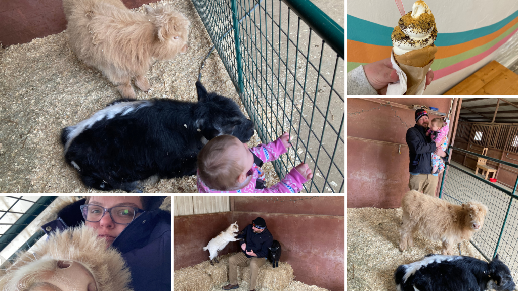 My dear and ever so patient husband made my manic pixie girl dreams of cuddling a micro Highland cow calf come true last week when we took a seven hour round trip to Sapulpa, Oklahoma to visit the High on the Hill Dairy Goat Farm, a sweet little establishment which for the low fee of only $50 will allow your family a private cow and goat cuddle session. In addition to cuddling the furriest, moo-iest calves your eyes have ever beheld, you have the opportunity to pick up and cuddle the Dwarf Nigerian baby goats which accompany them in the pen. The large barn stall was freshly cleaned, all the animals had ample space, and the views from barn atop the hill were lovely.